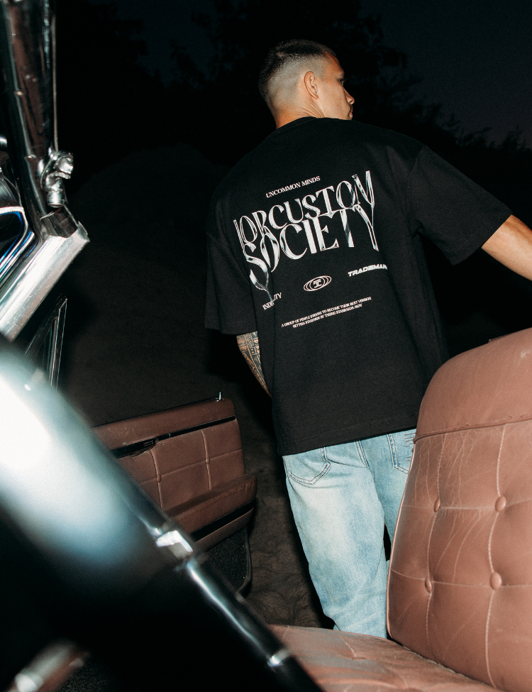 Het Jorcustom Uncommon Minds Loose Fit T-Shirt is gemaakt voor mannen die comfort en stijl willen combineren. Dankzij de loose fit pasvorm valt het shirt relaxed en ruim, ideaal voor een nonchalante maar moderne look. Door het pre-shrunk proces blijft de pasvorm behouden, was na was. De opvallende Uncommon Minds Society-print op de achterkant geeft een sterke streetwear uitstraling waarmee je direct een statement maakt. Perfect te dragen met jeans, shorts of een bomberjack voor een complete urban outfit.
