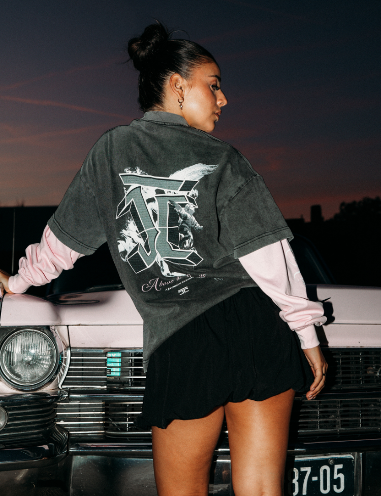 De JorCustom Women Above All Limits Double Layered Longsleeve is een echte eyecatcher voor de moderne streetwear look. Gemaakt van premium katoen en ontworpen met een loose fit pasvorm voor ultiem draagcomfort. Het unieke double layered design geeft dit item extra diepte en stijl, terwijl de opvallende Above All Limits-print op de achterkant zorgt voor een krachtige, urban uitstraling. Perfect te combineren met jeans, cargo pants of een oversized jacket voor een edgy en veelzijdige outfit.