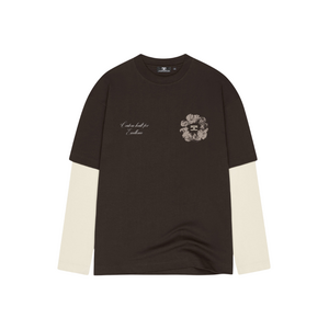 JorCustom Women Flowers Double Layered Longsleeve T- - Brown-Creme