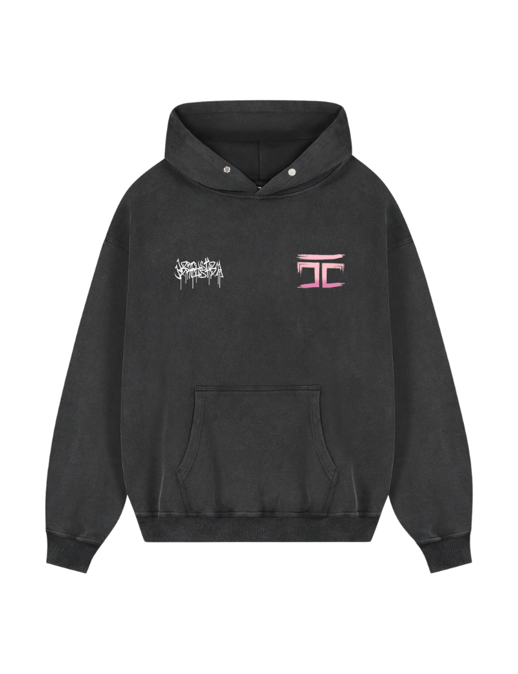 De JorCustom Graffiti Oversized Hoodie is een trui met een grote tekening achterop. Op de borst van deze trui staat een kleine tekst.