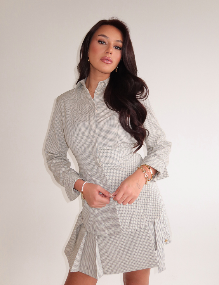 Design: Geruite print met klassieke kraag