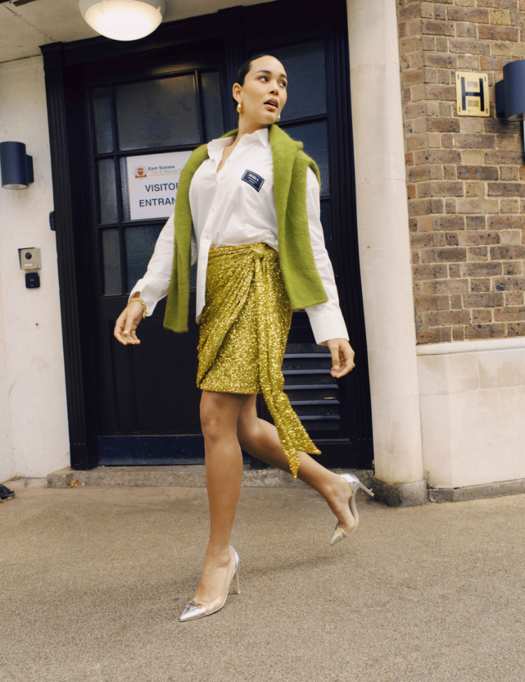 De rok is gevoerd met een zachte binnenlaag zodat hij comfortabel aanvoelt, zelfs tijdens lange avonden. Combineer ‘m met de Ziona top voor een coördinerende look