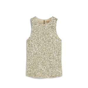De Josh V Carmen top in zilver is een mouwloze top, volledig voorzien van pailletten. Dankzij de subtiel getailleerde pasvorm en ronde halslijn is de top zowel elegant als flatterend. De binnenzijde is gevoerd met een gladde stof voor extra draagcomfort.