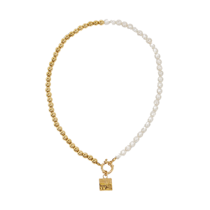 De JOSH V Femm ketting in de kleur Antique Gold is gemaakt van roestvrijstaal en fake pearls. De parelketting is voorzien van een JOSH V-logo bedel en sluit door middel van een ronde karabijnsluiting. De korte halsketting combineer je perfect met de andere parelsieraden uit de JOSH V collectie. De Femm ketting is ook een leuke cadeautip!