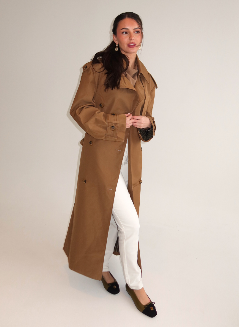 Deze stijlvolle ballerina combineert olijfgroen leer met een zwarte suède neus. De schoen is afgewerkt met een strik en een goudkleurig logo detail op de teen. Het contrast tussen de twee kleuren en materialen geeft de ballerina een verfijnde uitstraling. De platte zool zorgt voor draagcomfort, terwijl het gladde leer en de zachtere suède afwerking zorgen voor een luxe look. De ballerina heeft een zwart randje rondom de hiel en een zachte zwarte voering aan de binnenzijde.