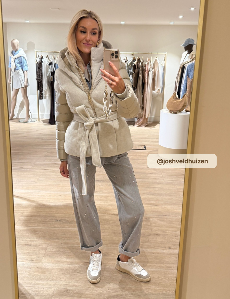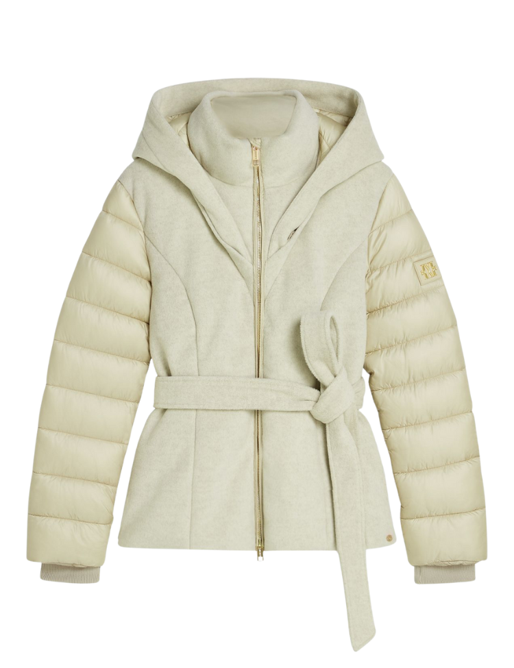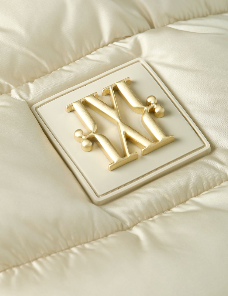 De jas is voorzien van elastieken cuffs, een ritssluiting met strikceintuur en handige ritszakken. De subtiele gouden fournituren geven de puffer coat een luxe uitstraling, terwijl de zorgvuldig gekozen materialen zorgen voor warmte en comfort tijdens de koudere dagen.