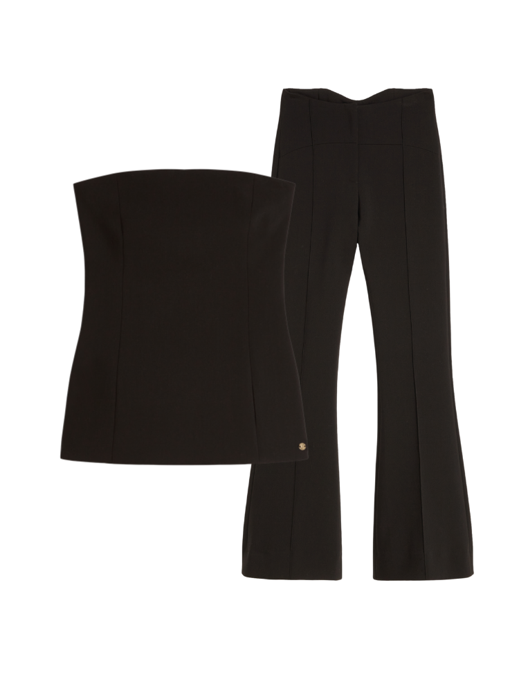 De Josh V Ivy set is de perfecte set voor chique of party gelegenheden! De Ivy dames top in de kleur Black is een stijlvolle, strapless bustier die perfect te combineren is met de bijpassende Kit broek. De nauwsluitende top is voorzien van een blinde ritssluiting aan de zijkant en een anti-sliprand aan de binnenkant van de borst. De top is gemaakt van een comfortabele kwaliteit met gerecycled polyester, LENZING™ ECOVERO™ viscose en stretch. Stijltip: draag de bustier top onder een blazer of over een blouse voor een chique winterlook. De Josh V Kit dames pantalon in de kleur Black is hét item voor een chique gelegenheid, maar is ook perfect casual te dragen. De zwarte pantalon is gemaakt van een comfortabele kwaliteit met stretch, bestaande uit gerecycled polyester en LENZING™ ECOVERO™ viscose. De broek sluit aan de bovenzijde mooi aan en loopt uit in flared broekspijpen.