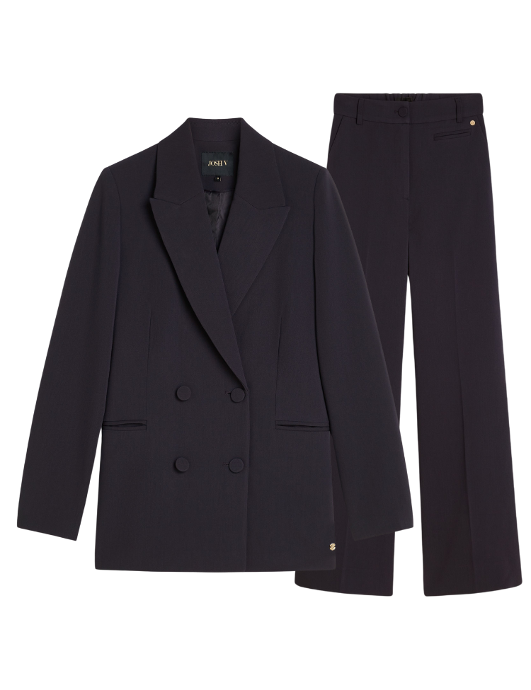Of je nu een zakelijke afspraak hebt of een casual gelegenheid, de JV Dillen Combi set in de kleur Dark Bleu past perfect bij elke gelegenheid. Het pak is gemaakt van een mooie kwaliteit met gerecycled polyester en voorzien de blazer van subtiele schoudervullingen.