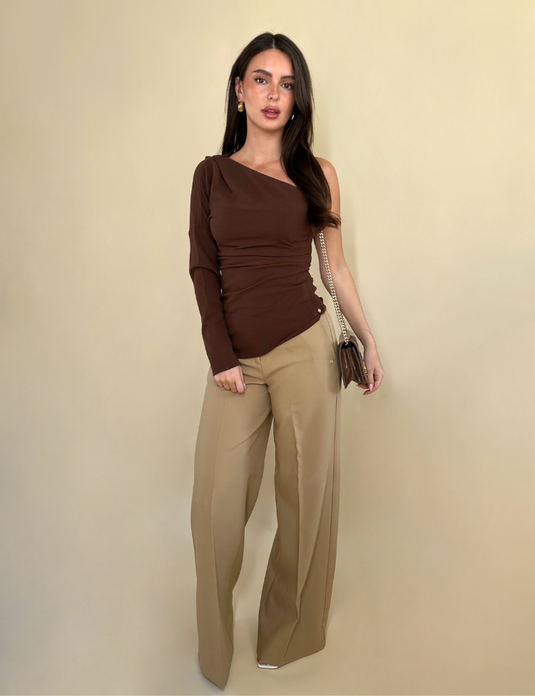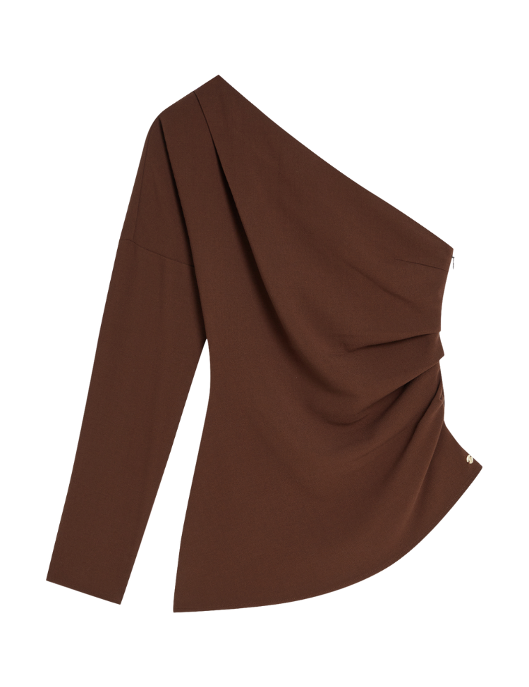 De Josh V Kelvis Top in Dark Brown is een elegante one-shoulder top met lange mouw. De top heeft een getailleerd ontwerp met subtiele plooidetails voor een flatterende pasvorm. Gemaakt van hoogwaardige stof, voelt deze top comfortabel aan en heeft hij een luxueuze uitstraling. Ideaal te combineren voor zowel formele als casual gelegenheden. Het asymmetrische ontwerp geeft een moderne en stijlvolle twist aan iedere outfit.