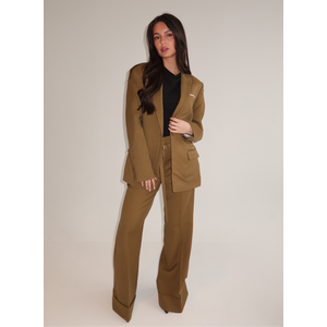 Draag deze wijde broek met de bijpassende blazer voor een complete outfit. De combinatie met een strakke top in crème of beige balanceert de wijde pasvorm. De olijfgroene kleur vormt een mooi geheel met goudkleurige accessoires. Ontdek meer stijlen van Josh V.