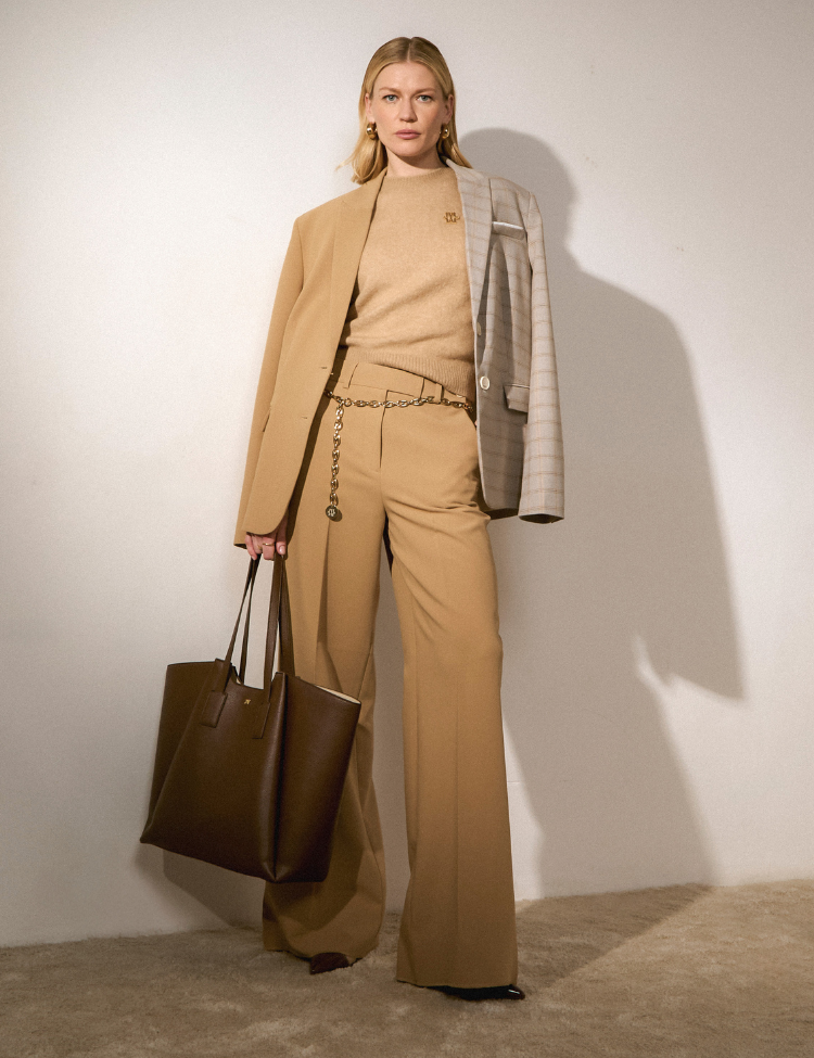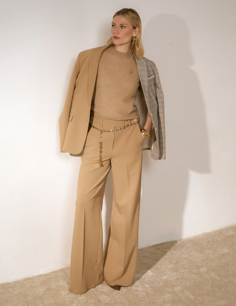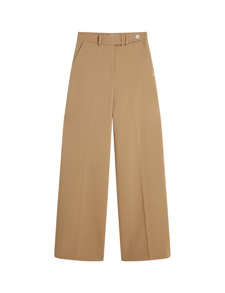 De JOSH V Kyrie pantalon in de kleur Light Brown is een stijlvolle, wide-leg pantalon met een elegante hoge taille en rechte pijpen. De pantalon is voorzien van een bijpassende tailleband met knoopsluiting en subtiele persvouwen aan de voorzijde, wat zorgt voor een verfijnde en tijdloze look. Het minimalistische ontwerp maakt deze pantalon veelzijdig te combineren
