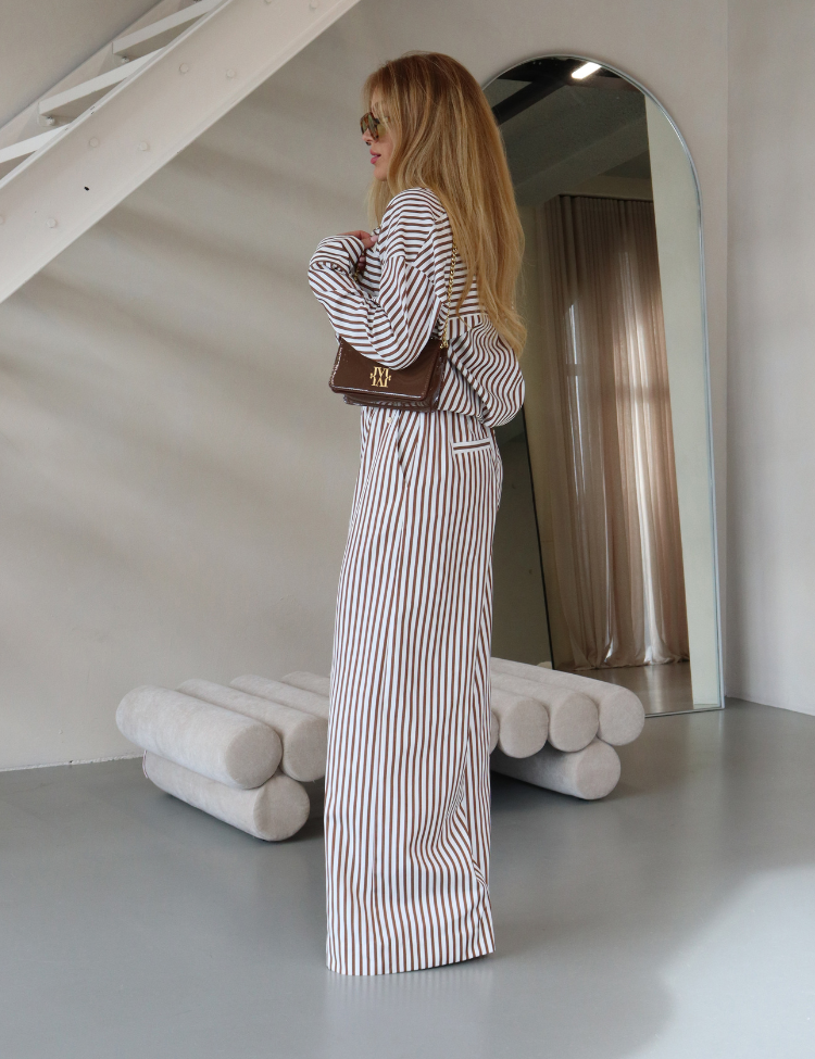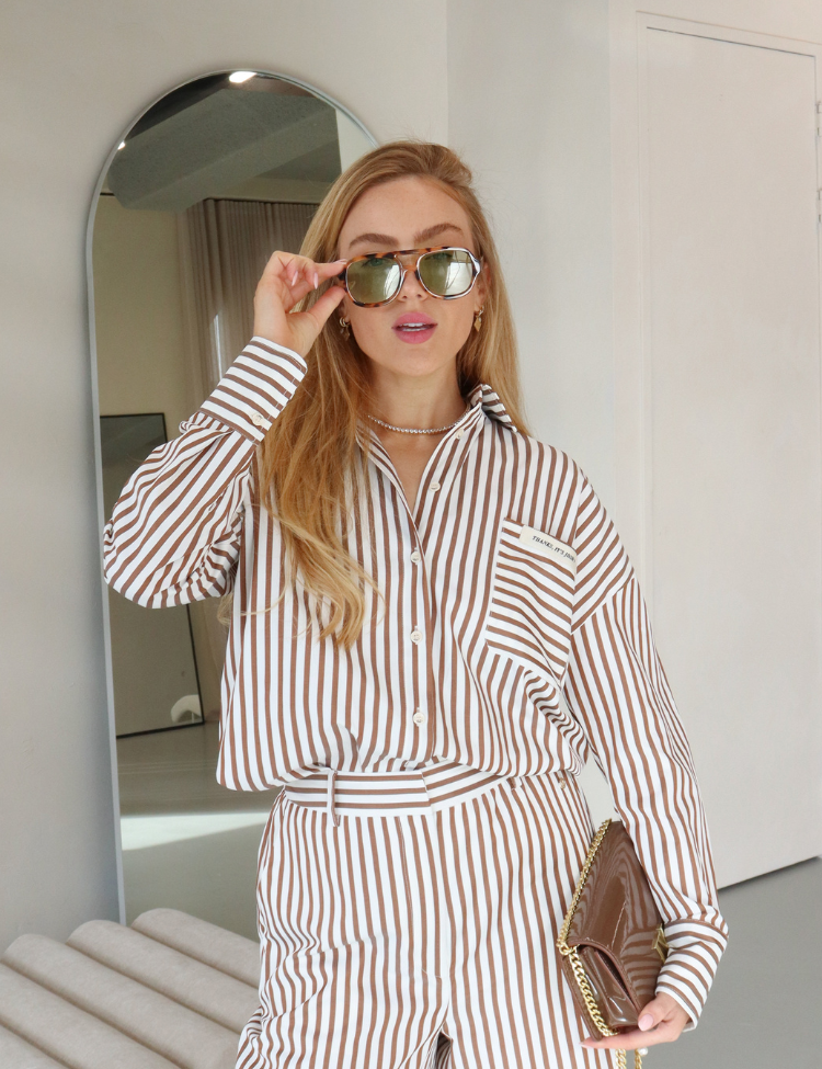 De Lexx Blouse van Josh V is een modern statement piece met een klassieke basis. De opvallende verticale streepprint in chocolate brown en light ecru geeft deze blouse een frisse, stijlvolle look die moeiteloos combineert met neutrale tinten en denim.