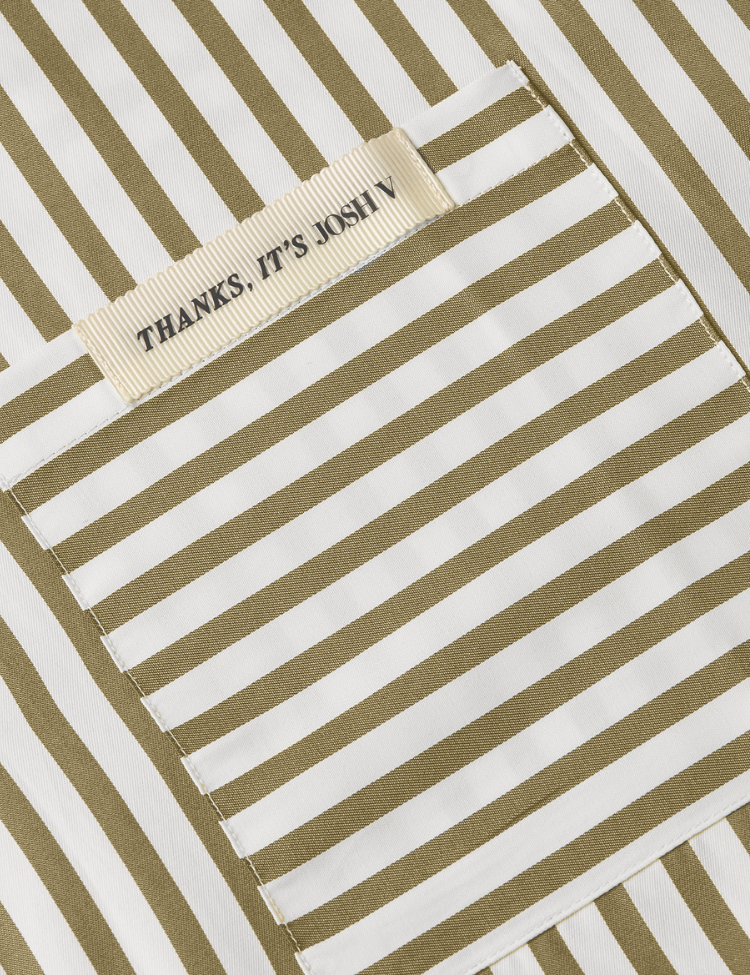 Op de borst vind je een opvallend borstzakje met contrasterende streep en de tekst "THANKS. IT’S JOSH V." – een subtiele knipoog naar high-end branding.
