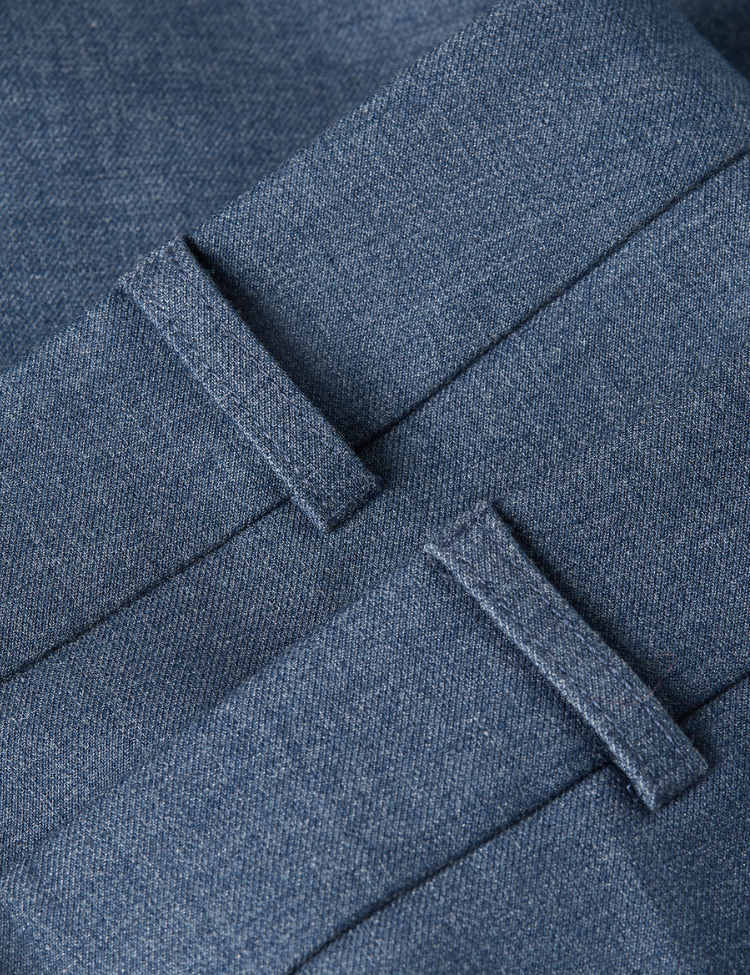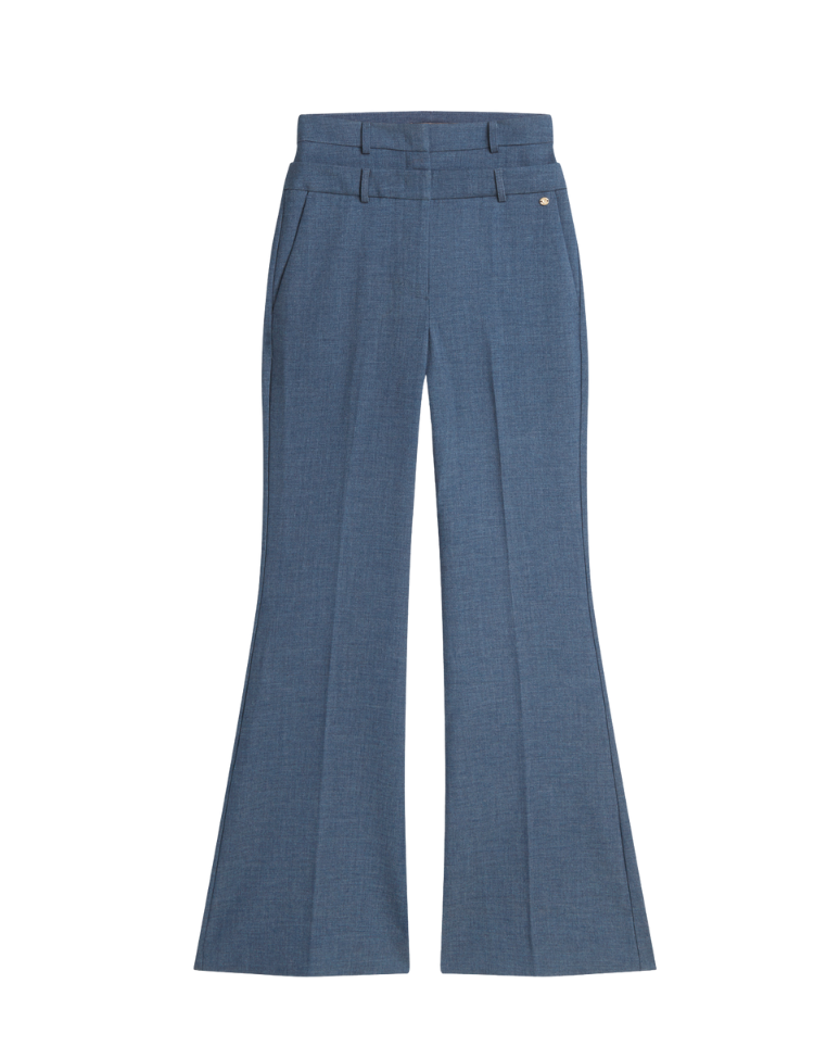 De Josh V Liora Pants in Blue Chambray is een stijlvolle pantalon met een moderne twist. Deze high-waist broek heeft een elegante flared fit die het silhouet verlengt en verfijnt. De zachte chambrayblauwe kleur geeft een frisse en eigentijdse uitstraling, perfect om te combineren met zowel zakelijke als casual looks.