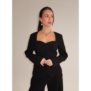 De Josh V Lise Top – Black is een chique, aangesloten top met een verfijnde blazerlook. De top heeft een elegante vierkante halslijn en is afgewerkt met beklede knopen aan de voorzijde voor een luxe, minimalistische uitstraling. De subtiele figuurnaden zorgen voor een mooi getailleerd silhouet, terwijl de flapzakdetails de top een klassieke, sophisticated touch geven. Aan de achterkant bevindt zich een goudkleurige ritssluiting die het geheel stijlvol afmaakt. Een perfecte keuze voor zowel zakelijke als avondlooks.