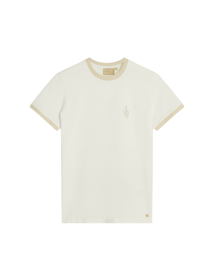 Het JOSH V Loren dames T-shirt in de kleur Off White is dé ultieme basic die je eindeloos combineert. Deze witte jersey heeft een aansluitende pasvorm en is gemaakt van katoen met stretch. Het katoen is ingekocht via Better Cotton. De halslijn en de mouwuiteinden zijn verrijkt met een beige bies. Daarnaast voegt het geborduurde JOSH V-logo op de linkerborst een uniek detail toe.