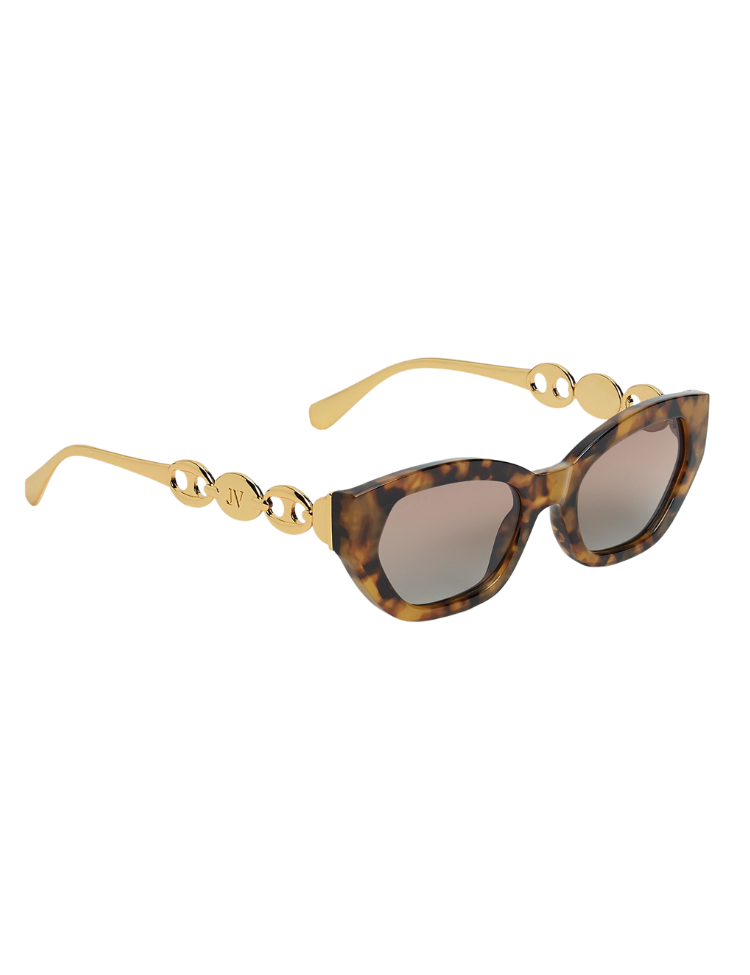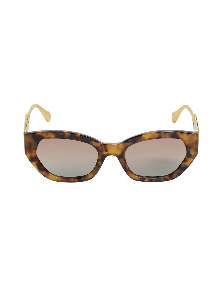 De JOSH V Meire zonnebril in de kleur Camel is een stijlvolle cateye zonnebril voor binnen- en buitengebruik. Het bruine montuur is voorzien van unieke gouden pootjes en licht bruine gepolariseerde brillenglazen die niet kunnen breken. Deze gepolariseerde glazen bieden bescherming tegen schitteringen die ontstaan bij weerkaatsing van het zonlicht. Met deze zonnebril heb je dus geen last van weerkaatsend zonlicht op asfalt, water, sneeuw, etc. Ideaal dus voor een dagje varen, autorijden of wintersport. Daarnaast bieden de glazen 100% UVA- en UVB-bescherming en is de zonnebril geproduceerd volgens CE. De zonnebril wordt geleverd met een handige faux leather brillencase.
