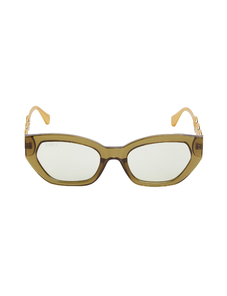 De JOSH V Meire zonnebril in de kleur Green is een stijlvolle cateye zonnebril voor binnen- en buitengebruik. Het montuur is voorzien van unieke gouden pootjes en licht groene brillenglazen die niet kunnen breken. De filter van de glazen is categorie 1 wat betekent dat de zonnebril geschikt is voor bewolkte dagen of een schaduwrijke omgeving. Daarnaast bieden de glazen 100% UVA- en UVB-bescherming en is de zonnebril geproduceerd volgens CE. De zonnebril wordt geleverd met een handige faux leather brillencase.