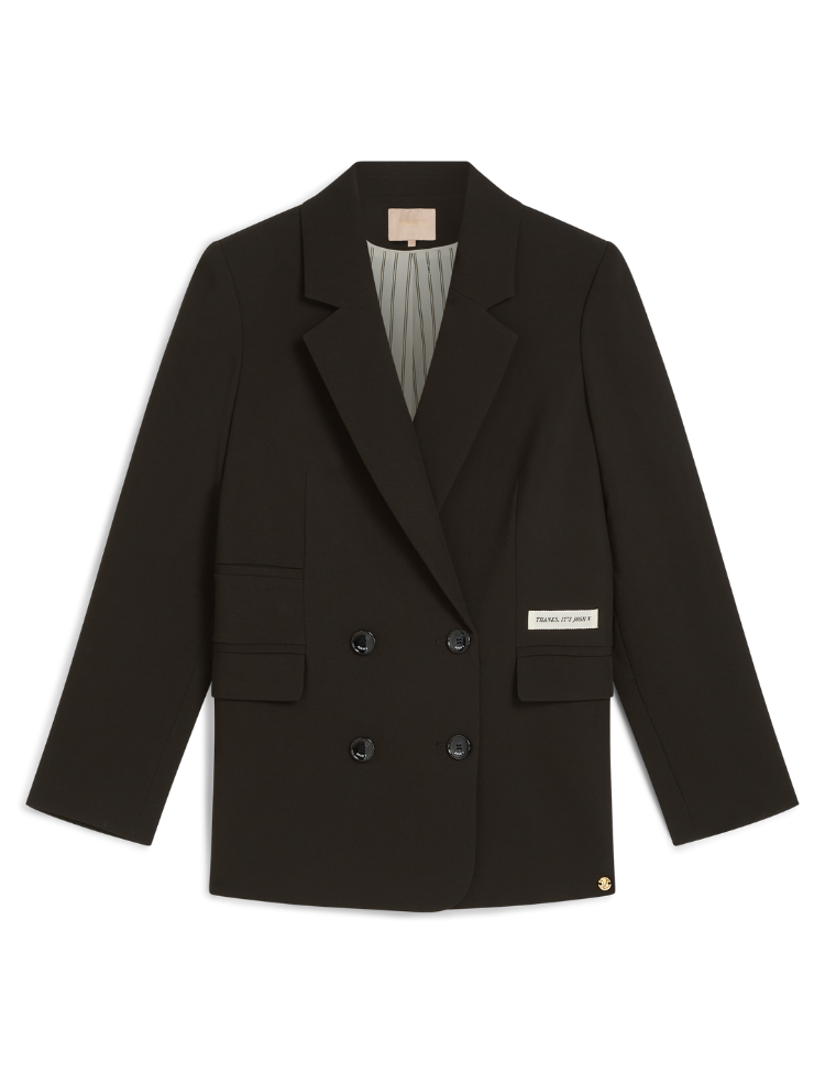 De Josh V Michelle Blazer in zwart is een vrouwelijke, tijdloze double-breasted blazer met een elegante rechte pasvorm. Het ontwerp is afgewerkt met subtiele schoudervulling en decoratieve klepzakken. De witte “THANKS, IT’S JOSH V” detailbadge op de voorzijde en de voering met streeppatroon geven de blazer een moderne twist. De blazer is gevoerd en voorzien van een licht getailleerde pasvorm, perfect voor zowel zakelijke als stijlvolle gelegenheden.
