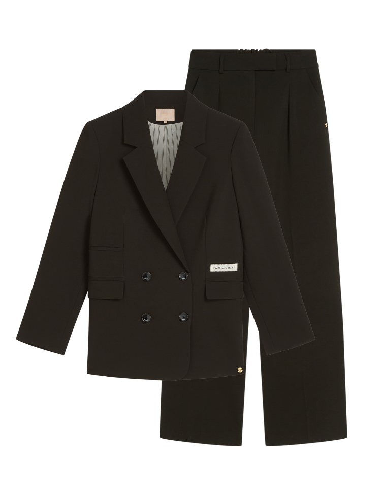 De diepe zwarte kleur en het cleane silhouet maken deze set geschikt voor elke gelegenheid: professioneel, vrouwelijk én super stijlvol. Combineer met een basic tee, blouse of de Leva Top voor een complete powerlook.