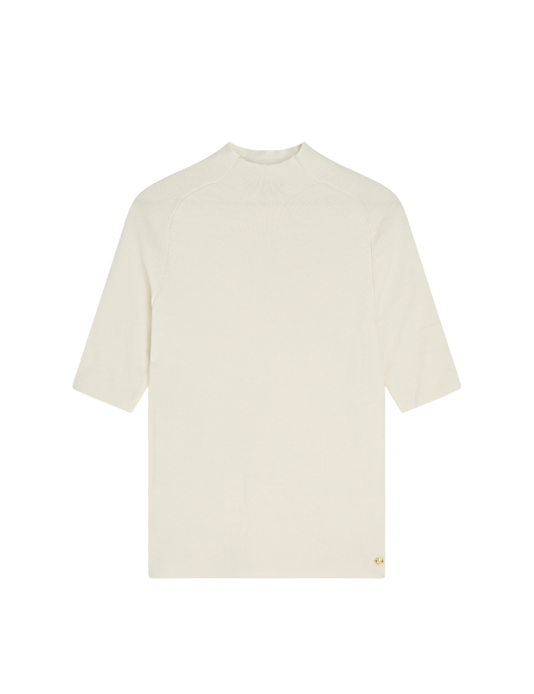 De Josh V Ollie Top in Light Ecru is een verfijnde essential met een minimalistische uitstraling. Gemaakt van een zachte, ribgebreide stof met subtiele stretch, voelt deze top als een tweede huid. De licht opstaande col en de halflange mouwen geven dit item een moderne, vrouwelijke touch.