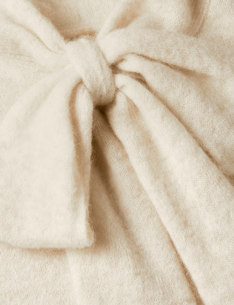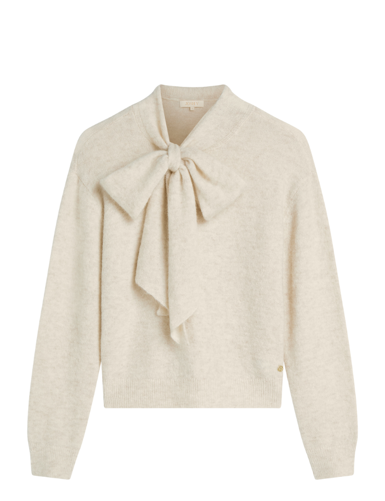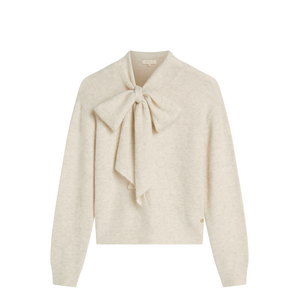 De Josh V Pemma Knit – Ecru Melange is een zachte, fijngebreide trui met een elegante en vrouwelijke uitstraling. De trui is uitgevoerd in een lichte ecru melange tint en heeft een comfortabele, licht losse pasvorm. De grote, sierlijke strik bij de halslijn vormt de absolute eyecatcher en geeft de knit een chique, modische look. Dankzij de ribgebreide boorden aan mouwen en zoom sluit de trui mooi aan voor een verzorgde afwerking. Het subtiele goudkleurige JV-logo maakt de luxe uitstraling compleet. Ideaal voor zowel casual chic als meer geklede outfits.