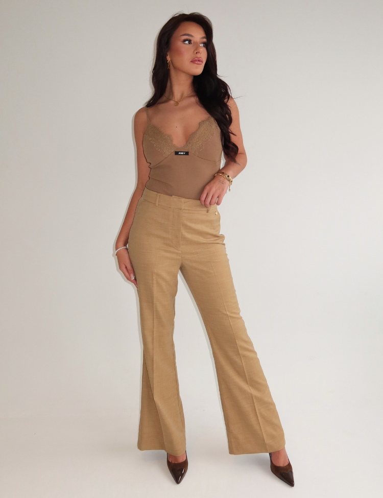 Combineer deze khaki top met een hoge pantalon voor een gebalanceerd silhouet. De kantdetails komen mooi uit onder een open blouse of blazer. Ook draagbaar onder een jacket voor een gelaagde look. Josh V creëert items die je op meerdere manieren kunt inzetten.