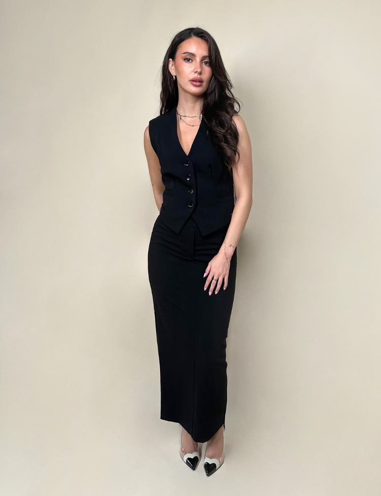 Dankzij de veelzijdige stijl combineer je deze rok moeiteloos met een blouse en pumps voor een krachtige office look, of met een knit en laarzen voor een meer casual maar chique outfit. Een veelzijdige essential die past in elke garderobe van de moderne, modebewuste vrouw.