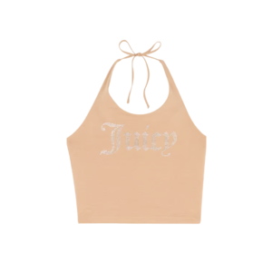 Soft, sexy & seriously Juicy. Deze haltertop van Juicy Couture in de kleur Nomad (een zachte beige tint) is dé Y2K essential voor jouw zomergarderobe. De klassieke haltersluiting in de nek geeft een flirty vibe, terwijl het strakke model je silhouet prachtig accentueert. Het iconische “Juicy”-logo schittert op je borst in strass steentjes – net als toen, maar dan nog beter.