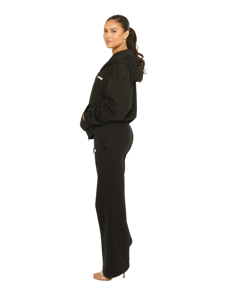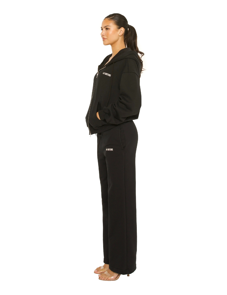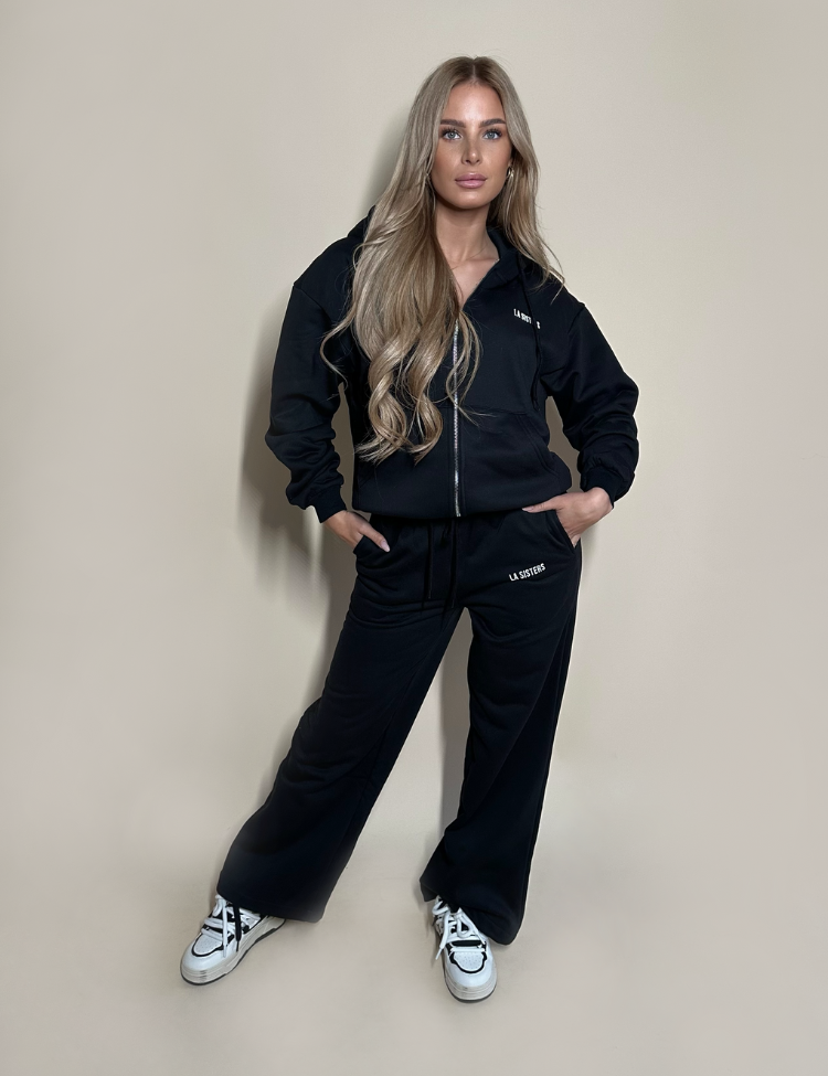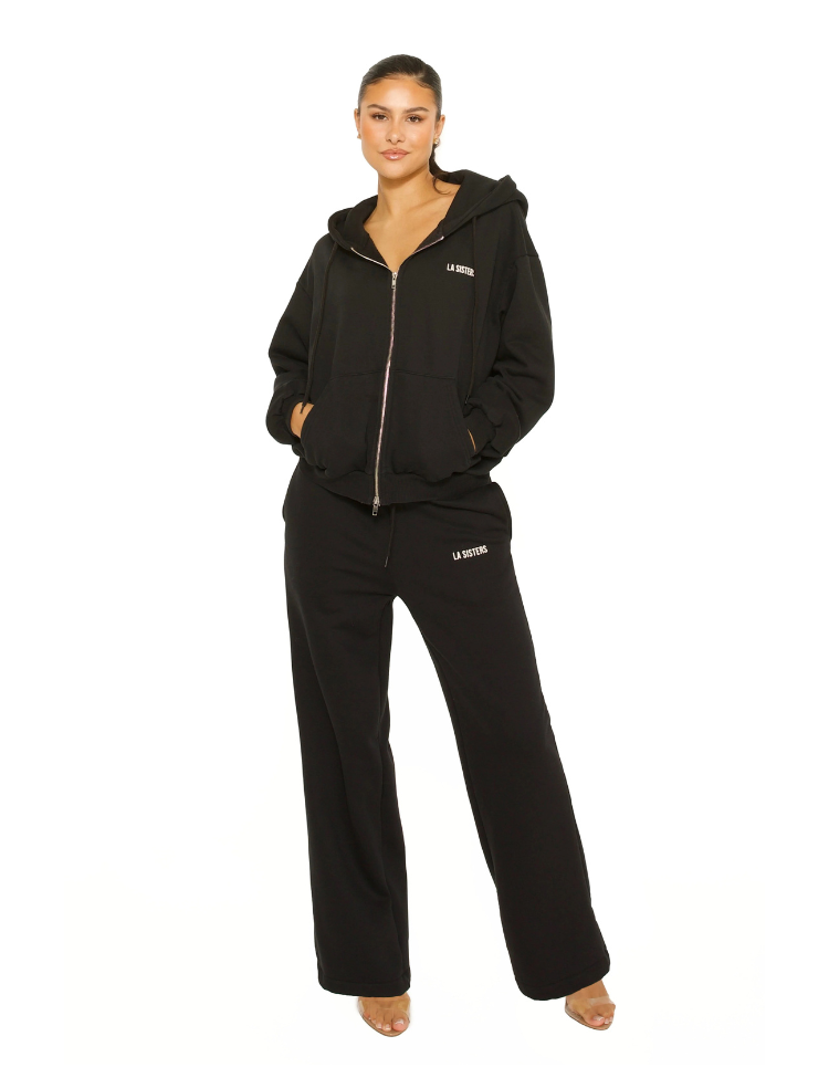 De La Sisters Essential Combi-set, bestaande uit de Essential Straight Leg Sweatpants en de Essential Double Zipper Hoodie, is de ultieme keuze voor moeiteloze stijl en comfort, het hele jaar door. De hoodie heeft een oversized pasvorm en is voorzien van een dubbele ritssluiting voor verstelbare styling, een gezellige capuchon en praktische zijzakken. De sweatpants zijn ontworpen met een slanke, rechte pasvorm en een elastische tailleband met verstelbare trekkoordjes voor de perfecte fit. Het 'LA SISTERS' logo in reliëf voegt een subtiel modieus detail toe.Verkrijgbaar in meerdere kleuren.