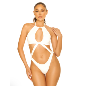 La Sisters Halter Ruched Swimsuit - White