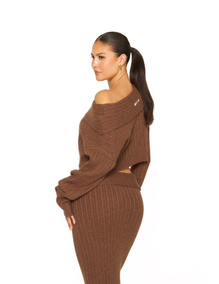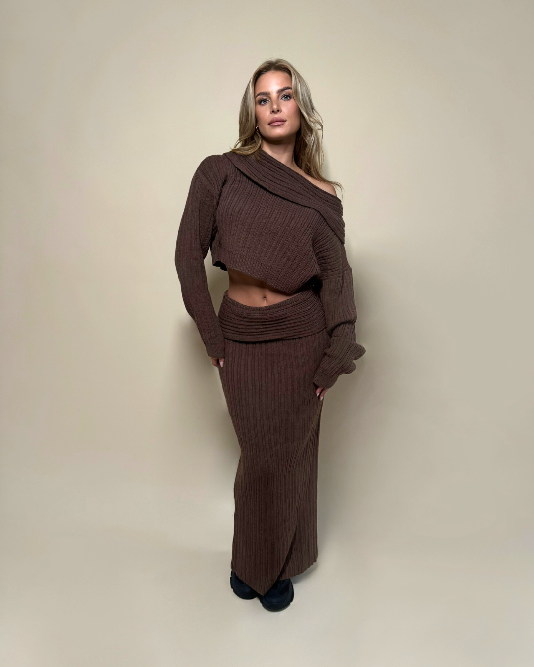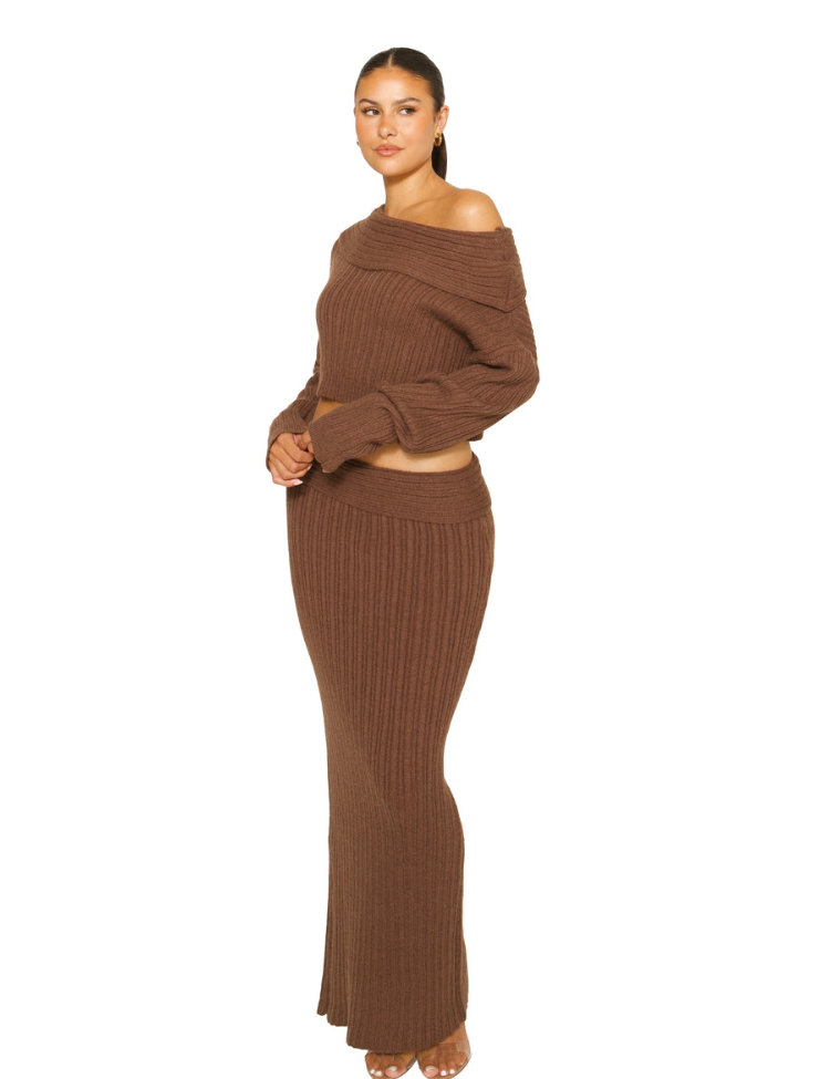 La Sisters Knitted Off-Shoulder Co-Ord - Brown