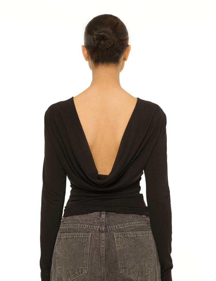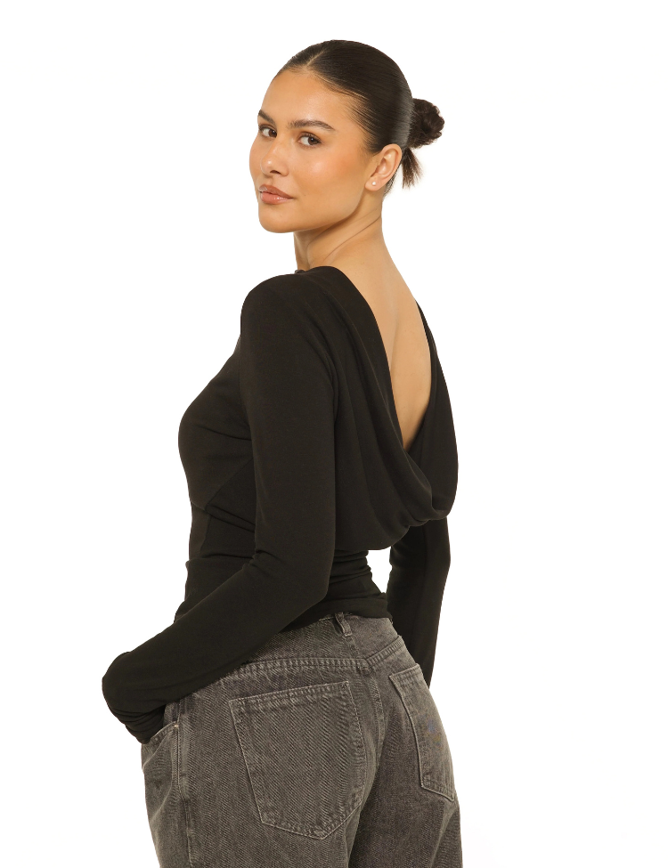La Sisters Long Sleeve Open Back Top - Black