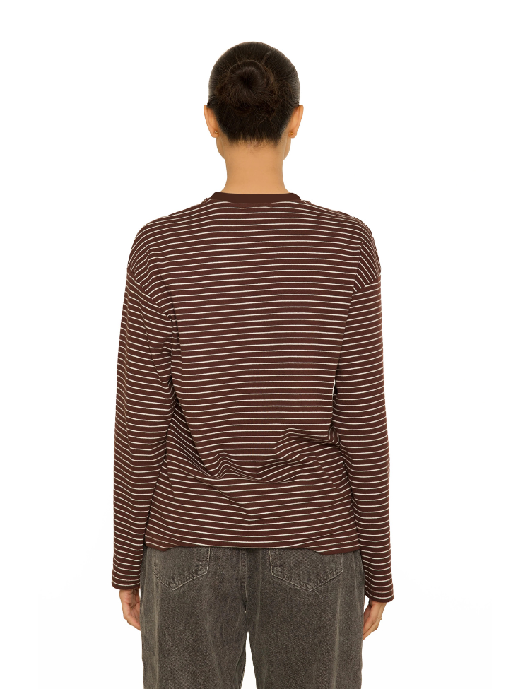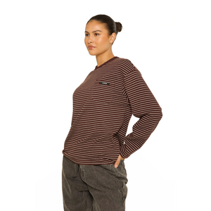 La Sisters Long Sleeve Oversized Striped Tee - Brown