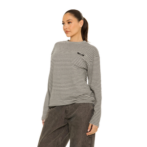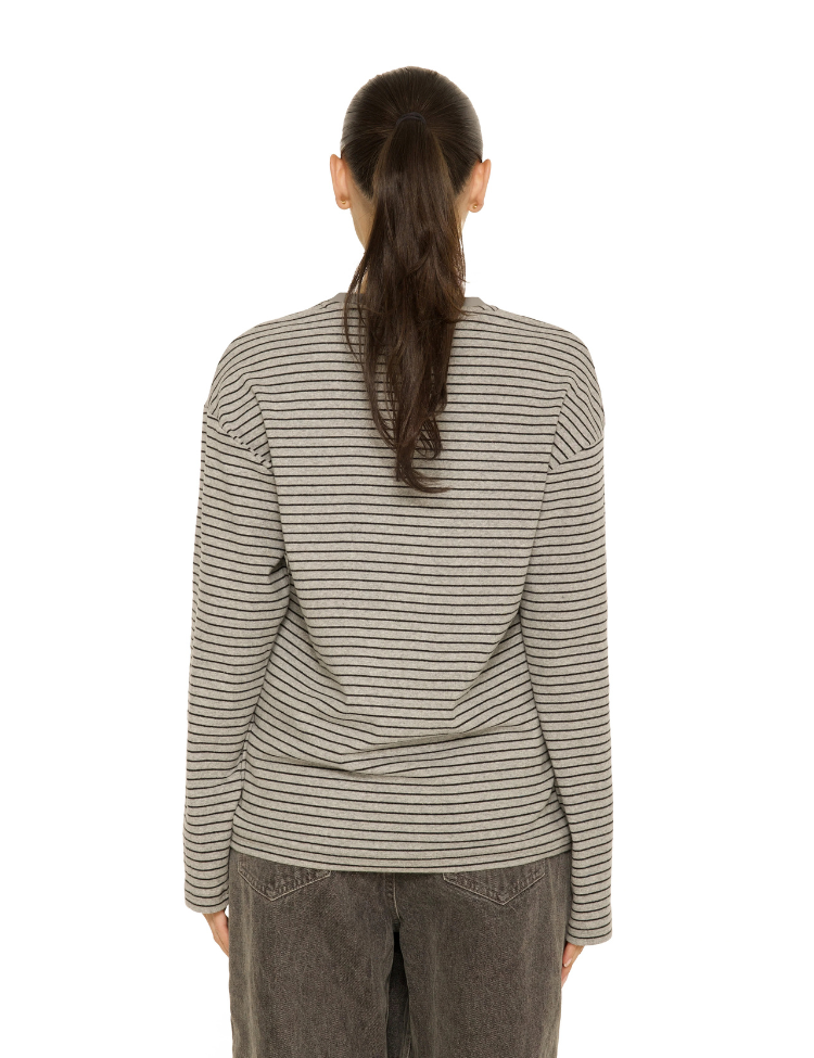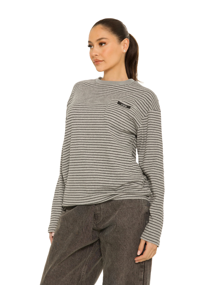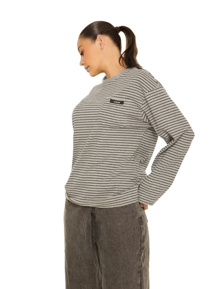 La Sisters Long Sleeve Oversized Striped Tee - Dark Grey