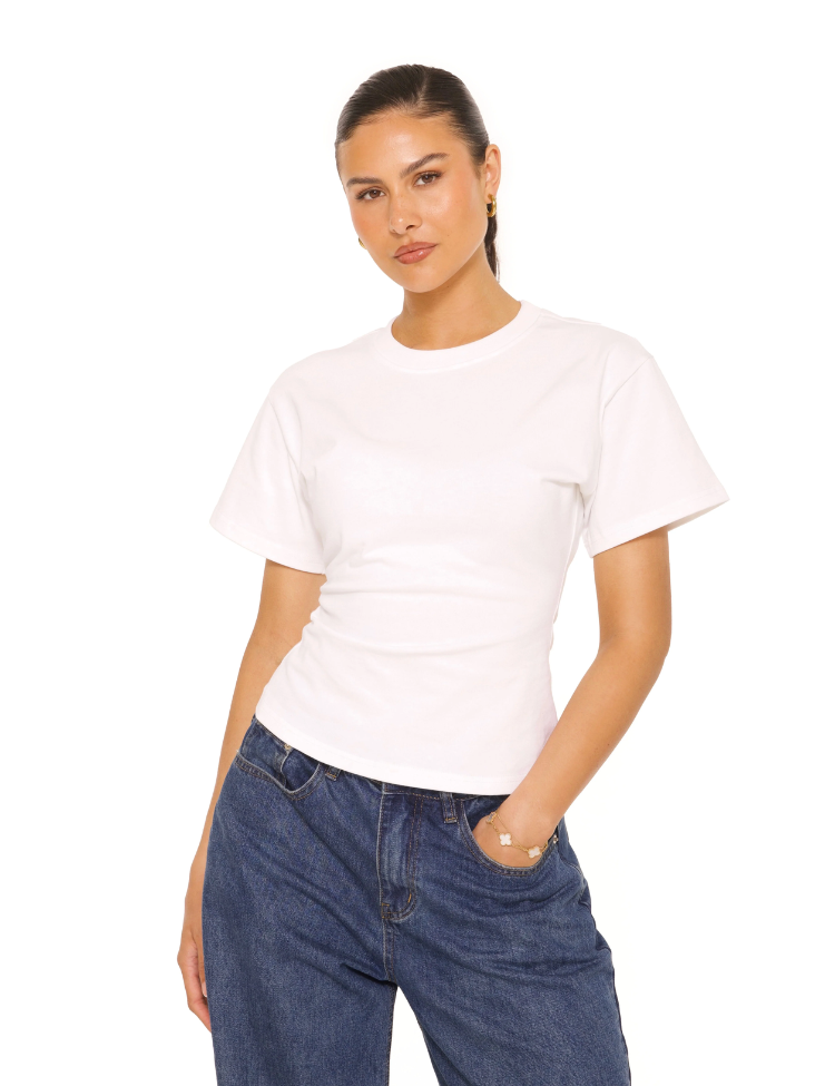 De Oversized Waist Tee van La Sister is hét perfecte T-shirt voor de vrouw die houdt van comfort met een vrouwelijke twist. Deze witte tee combineert een relaxte oversized fit met een subtiel getailleerd effect in de taille, wat zorgt voor een flatterende en moderne silhouet. Gemaakt van hoogwaardig katoen voelt het shirt zacht en ademend aan, ideaal voor dagelijks gebruik of casual outfits met stijl. De verlaagde schoudernaden en ruime mouwen versterken het nonchalante karakter, terwijl de lichte taillering zorgt voor een vrouwelijke touch. Draag ‘m op een mom jeans, cargobroek enz.–voor een effortless streetstyle look.