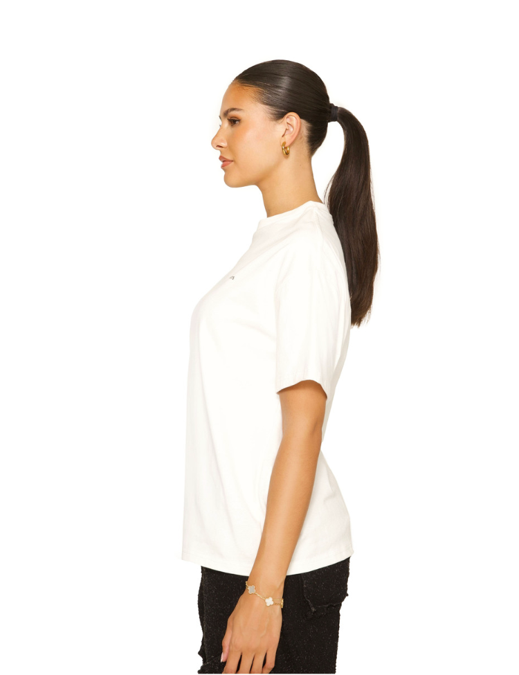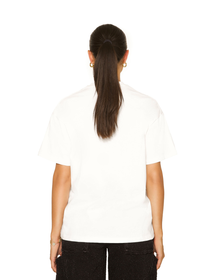 Loïs is 1.73m en draagt de Signature Oversized Tee in maat XS. Dit item valt op maat, dus we adviseren om je eigen maat te bestellen