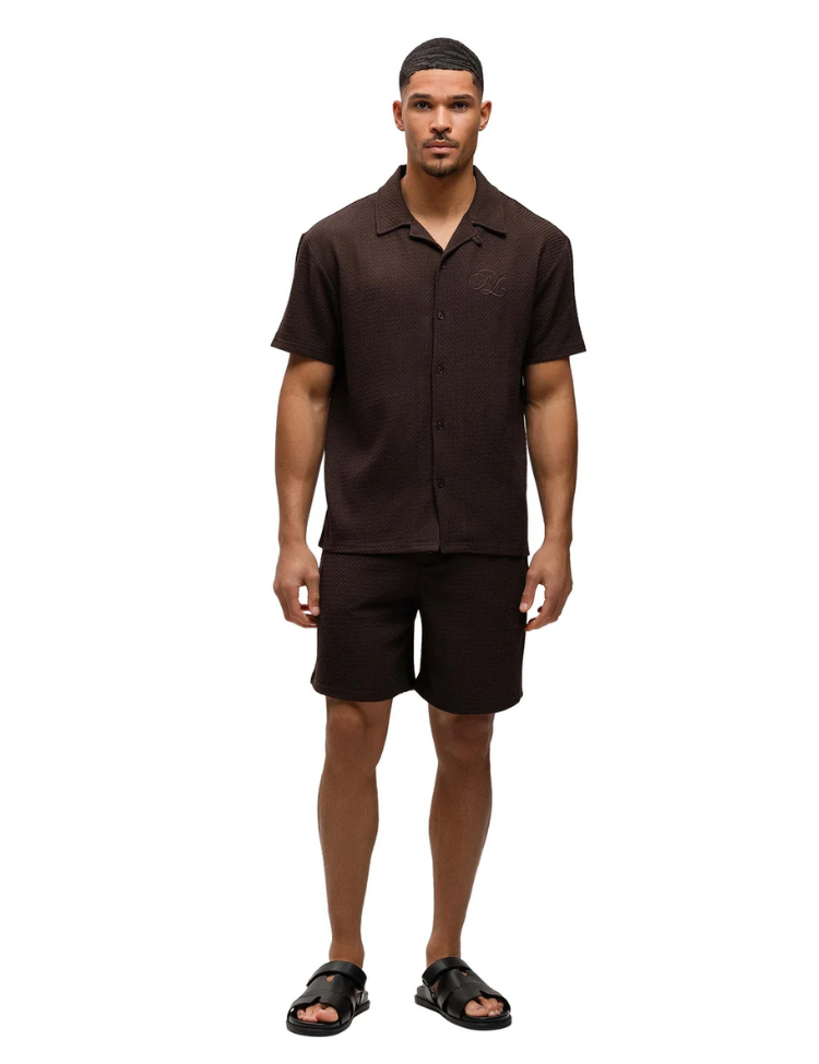 Malelions Diagonal Seersucker Combi-Set - Dark Brown