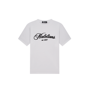 Het Malelions Handwritten T-Shirt combineert een minimalistische uitstraling met een stijlvolle, herkenbare branding. Dit witte T-shirt is gemaakt van zacht katoen en voorzien van het iconische Malelions-handgeschreven logo op de borst in contrasterende zwarte letters. Dankzij de regular fit en klassieke ronde hals is dit shirt veelzijdig te dragen, zowel casual als in combinatie met een jasje of overhemd. Een tijdloze toevoeging aan je kledingkast die comfort en stijl moeiteloos samenbrengt.