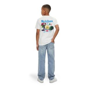 Dit witte Malelions kids T-shirt met ronde hals heeft korte mouwen en een relaxte pasvorm. Op de borst vind je het Malelions logo met een kleurrijke ijsjesprint en de tekst "Lago Di Como". De achterkant laat een grote, gedetailleerde illustratie zien met bloemen, fruit, glazen en een Malelions cap, aangevuld met het Malelions logo in blauw. Een zomers shirt dat er direct uitspringt.