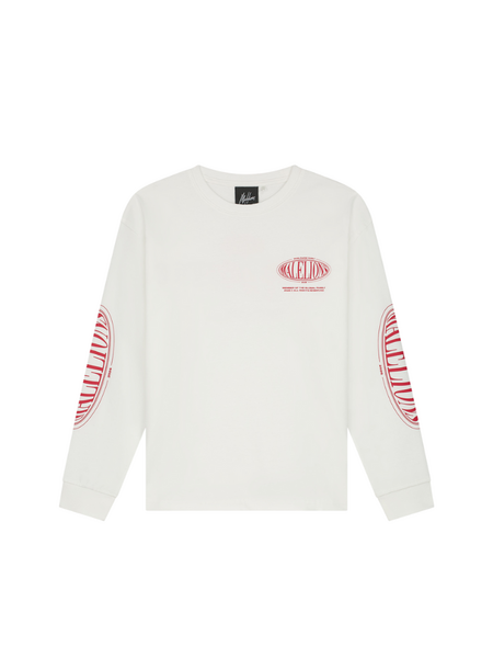 Malelions Kids Relaxed Lifestyle Longsleeve T-Shirt - Off-White/Red