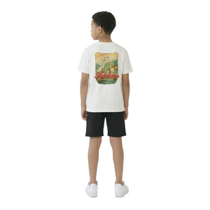 Malelions Kids Relaxed White Heron T-Shirt - Off-White/Red