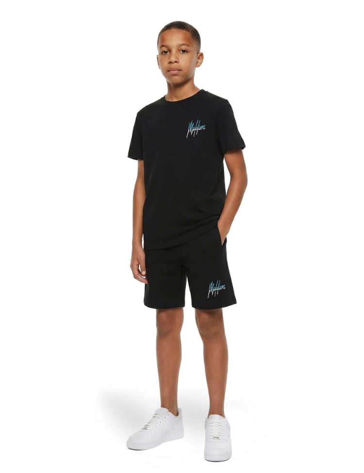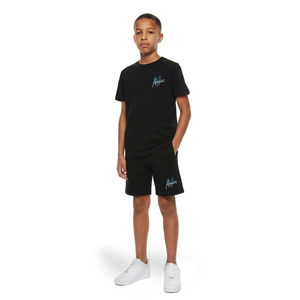 Deze zwart/blauwe korte broek voor kids heeft een elastische tailleband met drawstring voor een comfortabele pasvorm. Op het linkerbeen staat het Malelions logo in een blauw-wit split design. Aan de voorzijde zitten twee steekzakken en op de achterzijde een opgestikte zak met het geborduurd Malelions logo. Een sportieve sweatshort die perfect past bij warme dagen.