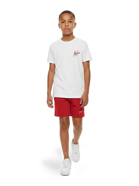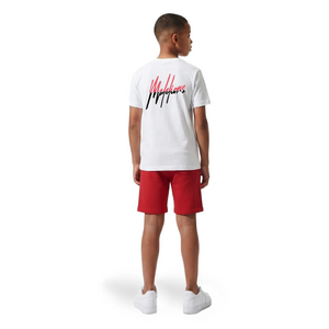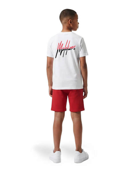 Dit witte Malelions kids T-shirt met ronde hals heeft een opvallend split design op de borst: het Malelions logo in rood en zwart. Op de achterzijde keert hetzelfde logo groter terug als eyecatcher. De korte mouwen en het rechte silhouet maken dit shirt lekker comfortabel voor elke dag.