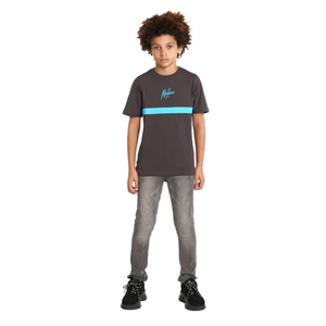 Malelions Kids Grafiet T-Shirt met Blauwe Streep