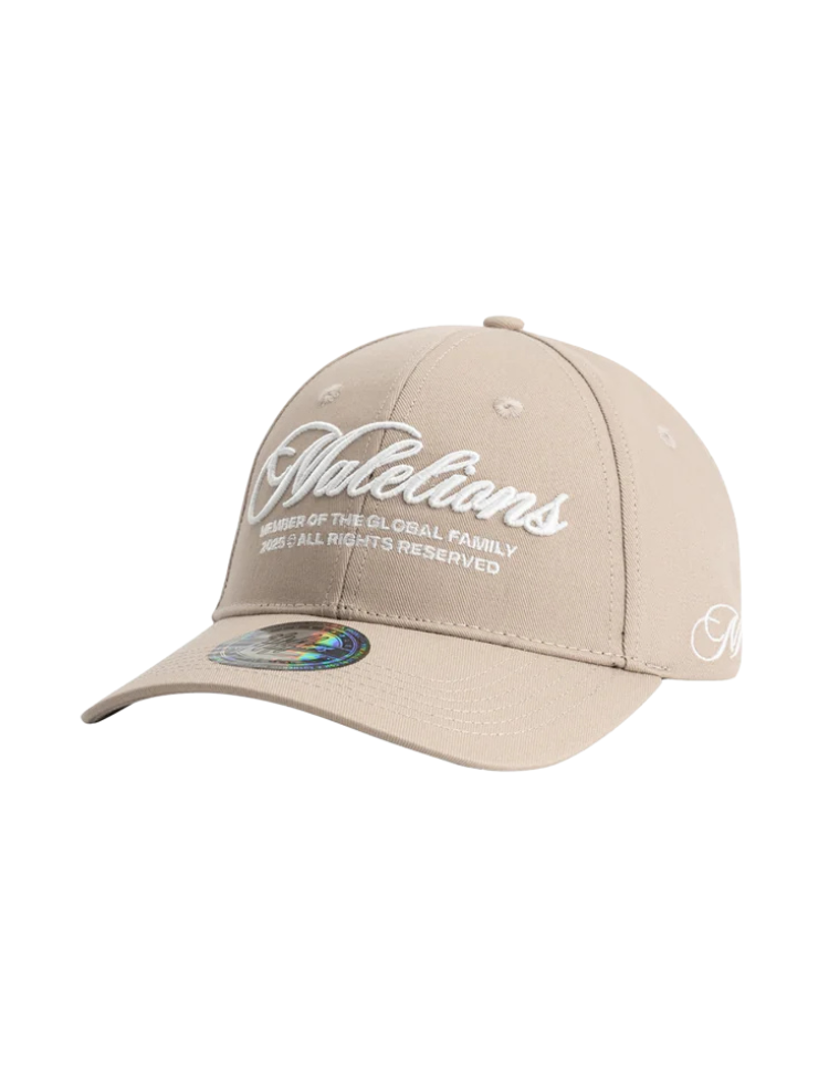 Deze stoere pet van Malelions combineert taupe met witte accenten voor een frisse streetwear look. De baseball cap heeft een gebogen klep en zes panelen voor een klassieke pasvorm. Op de voorkant staat "Malelions" in wit script lettering met daaronder "Member of the Global Family" en "2005 all rights reserved". De verstelbare sluiting aan de achterkant zorgt voor een perfecte fit. Het stevige katoen voelt comfortabel aan tijdens je dagelijkse activiteiten.