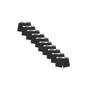 Deze Malelions herenboxers komen in een praktische 10-pack voor je dagelijkse ondergoedcollectie. De zwarte boxershorts hebben een contrasterende witte elastische tailleband met het kenmerkende Malelions logo in zwarte letters. Het strakke ontwerp biedt een comfortabele pasvorm met voldoende bewegingsvrijheid. De boxers zijn uitgevoerd in een klassieke trunk-lengte die perfect aansluit op het lichaam. Een essentiële basis voor elke garderobe waarbij kwaliteit en stijl samenkomen.