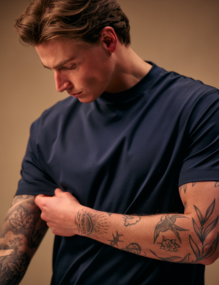 Dit navy blauwe t-shirt van Malelions combineert een verfijnde mercerized afwerking met een stoere, moderne uitstraling. Het shirt heeft een klassieke ronde halslijn en korte mouwen die je armen vrij laten voor beweging. De diepblauwe kleur geeft het kledingstuk een tijdloze look die je eindeloos kunt combineren. Door de gladde, glanzende textuur van het mercerized katoen voelt dit basic shirt luxe aan en houdt het zijn vorm perfect.