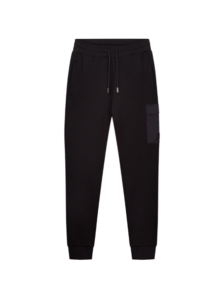 De Malelions Nylon Pocket Sweatpants - Black is een eigentijdse jogger die stijl en functionaliteit combineert. Deze sweatpants is uitgevoerd in hoogwaardig katoenmix met toegevoegde nylon details op de cargozakken, wat zorgt voor een sportieve en moderne uitstraling. Het ontwerp heeft een regular fit met taps toelopende pijpen en een comfortabele elastische tailleband met trekkoord. Praktische elementen zoals zijzakken en een achterzak worden aangevuld met een opvallende nylon pocket met logo-patch op het been, waardoor de broek een unieke en stoere uitstraling krijgt. Ideaal voor zowel casual outfits als sportieve looks.