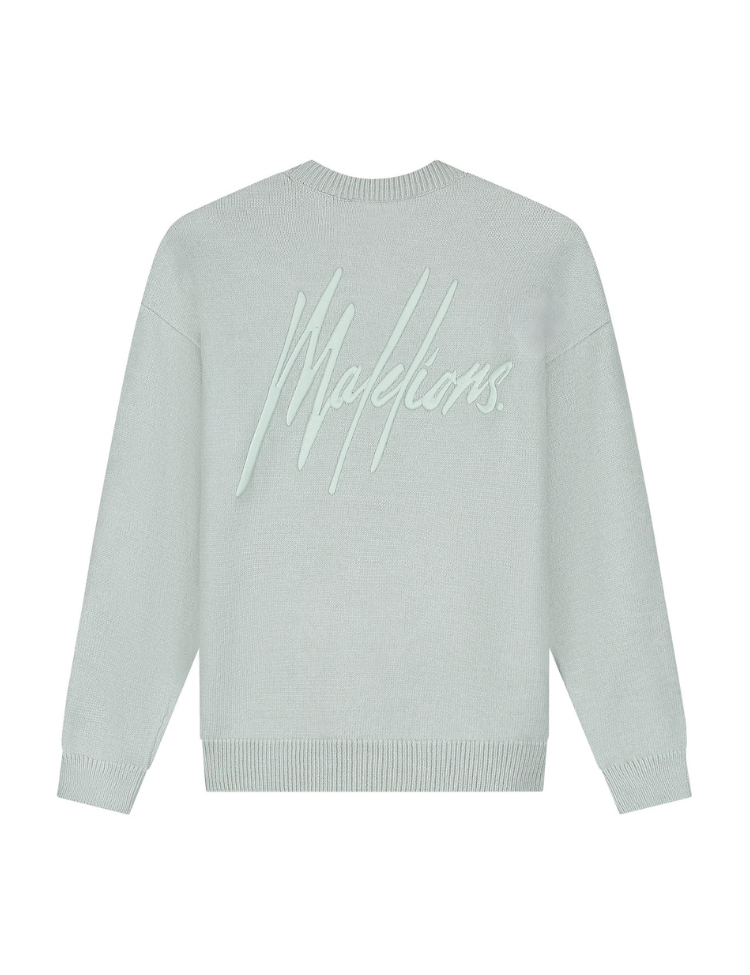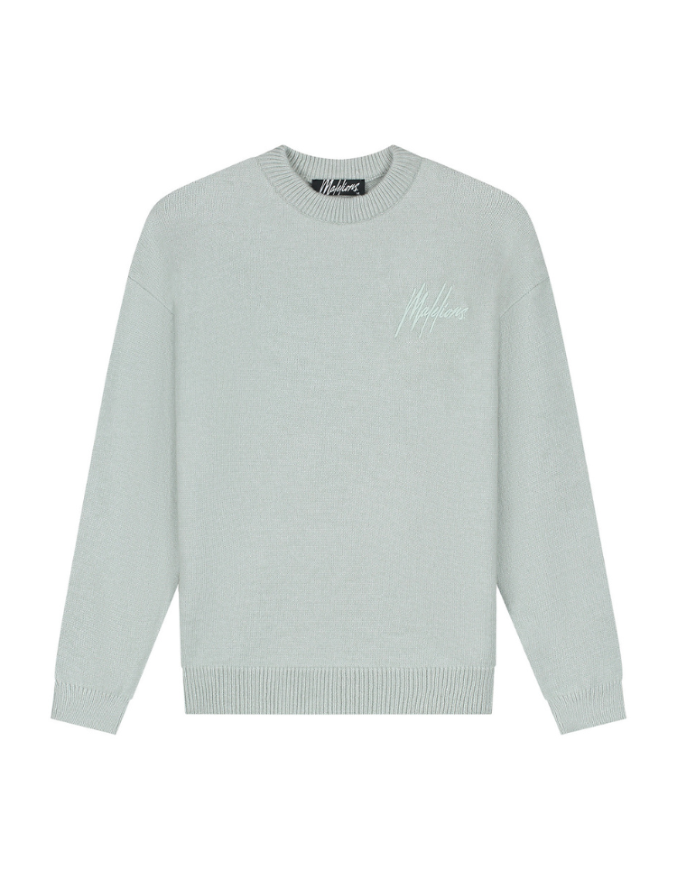 Malelions Oversized Knitted Signature Sweater - Ocean Grey
